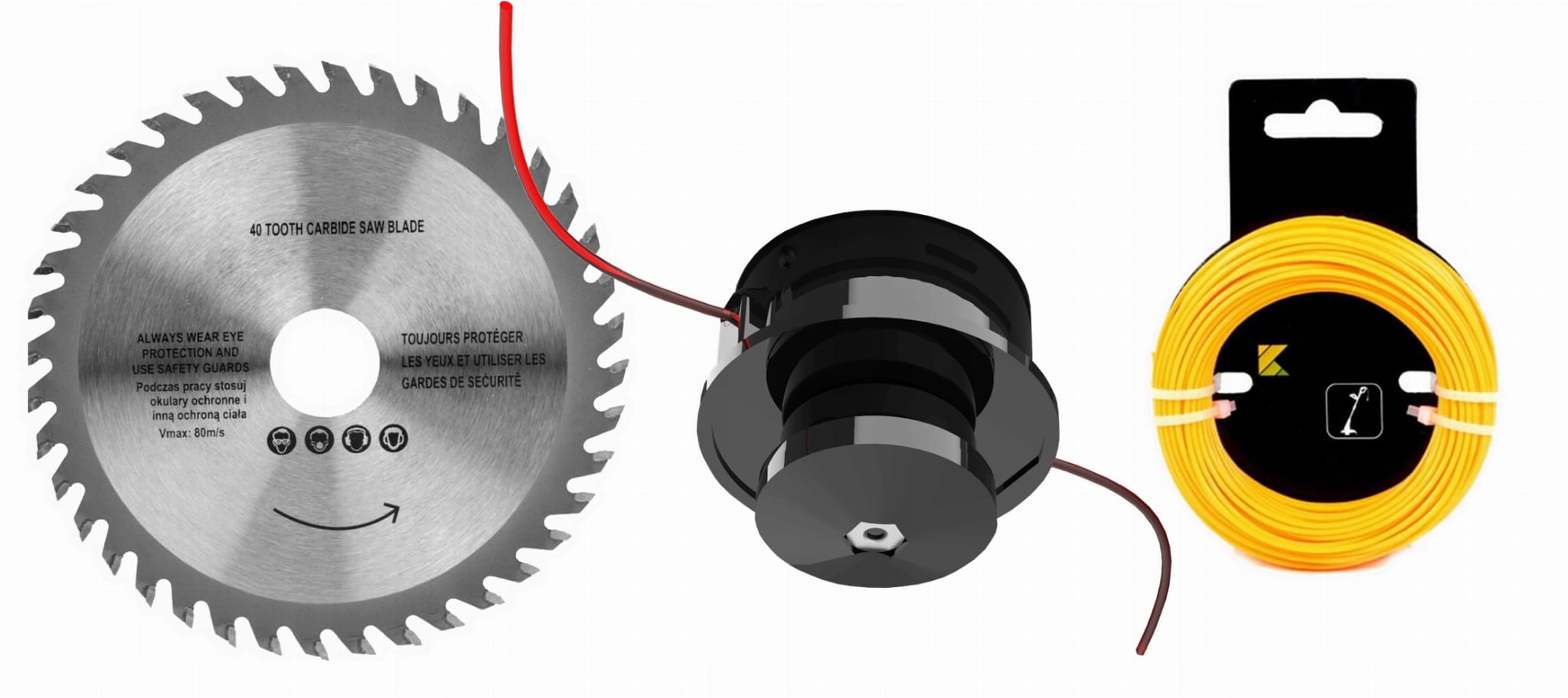 Głowica z 2 wąsami żyłki jak w kosach spalinowych, w podkaszarkach Aku zawsze wystaje 1 mozolnie kosząca żyłka..