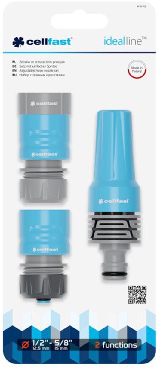 Zestaw ze zraszaczem prostym 1/2"-5/8" marki Cellfast to klasyczny i łatwy w obsłudze model zraszaczy ręcznych.