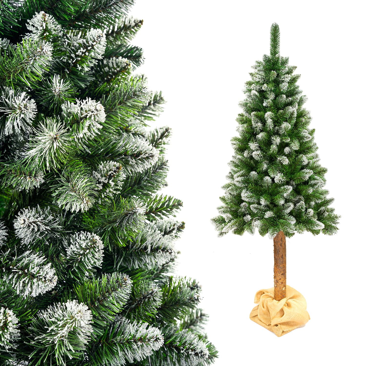 Połączenie wysokiej jakości materiałów, z której zbudowana jest korona wraz z prawdziwym, naturalnym pniem i materiałem jutowym gwarantuje wieloletnie bezproblemowe użytkowanie. Sosnowy pień choinki posiada naturalną korę, ślady po żywicy oraz emituje cudowny zapach, który doskonale podkreśli świąteczną atmosferę.
