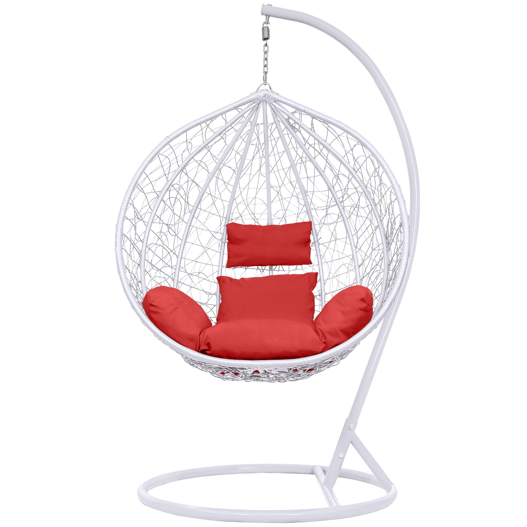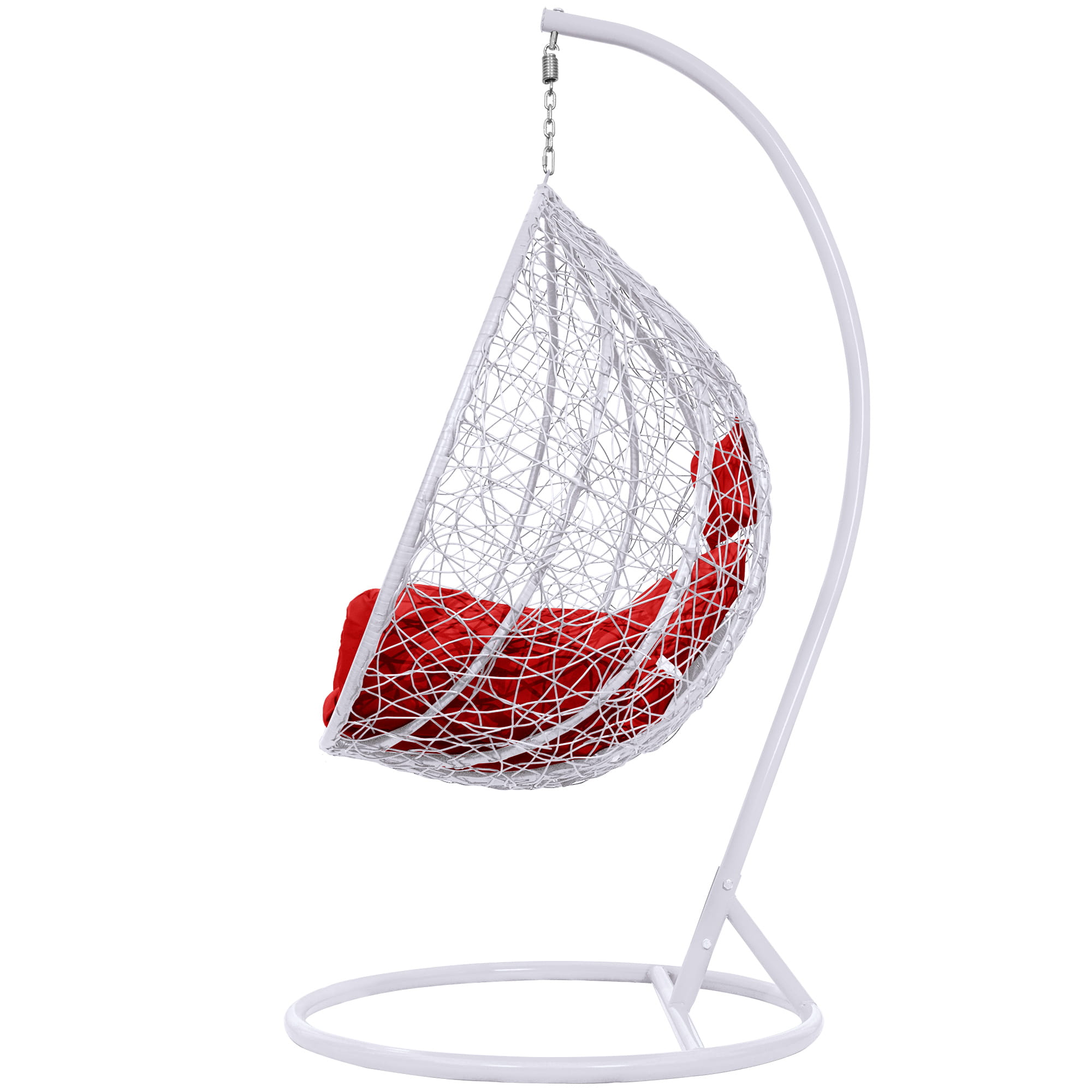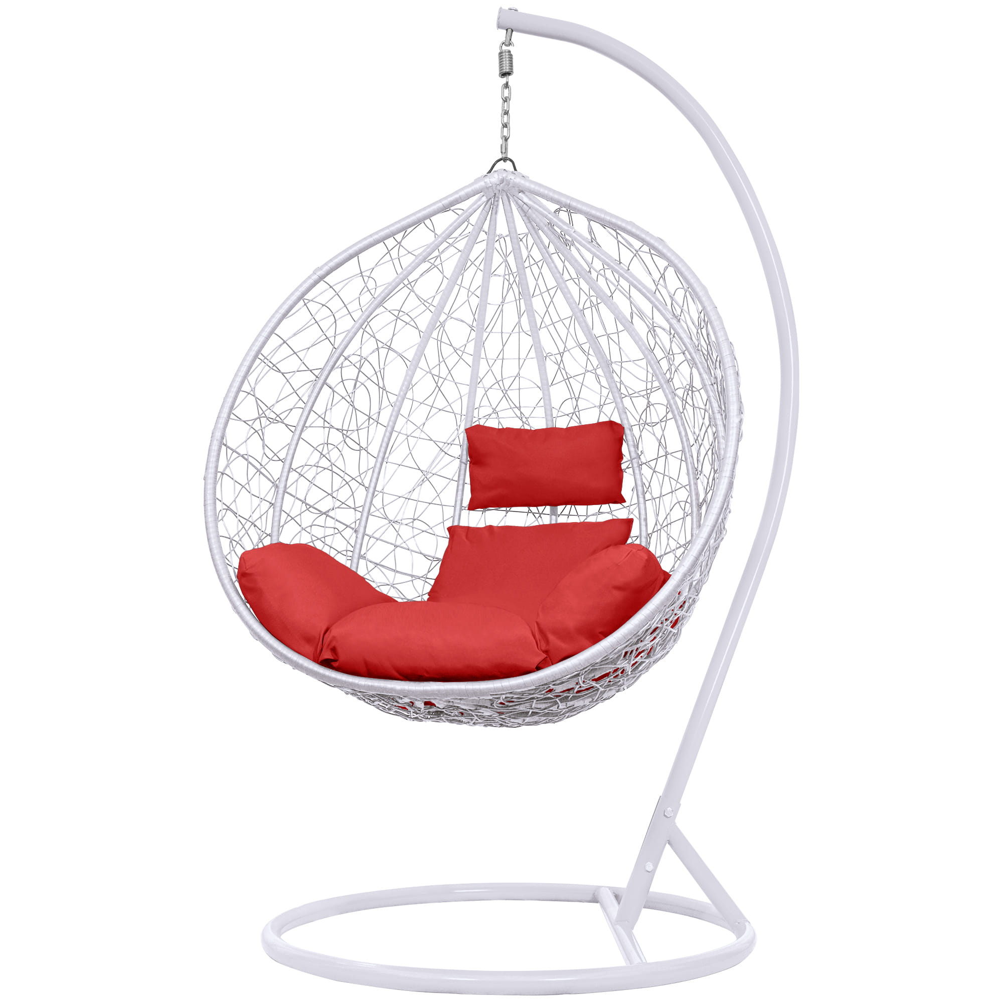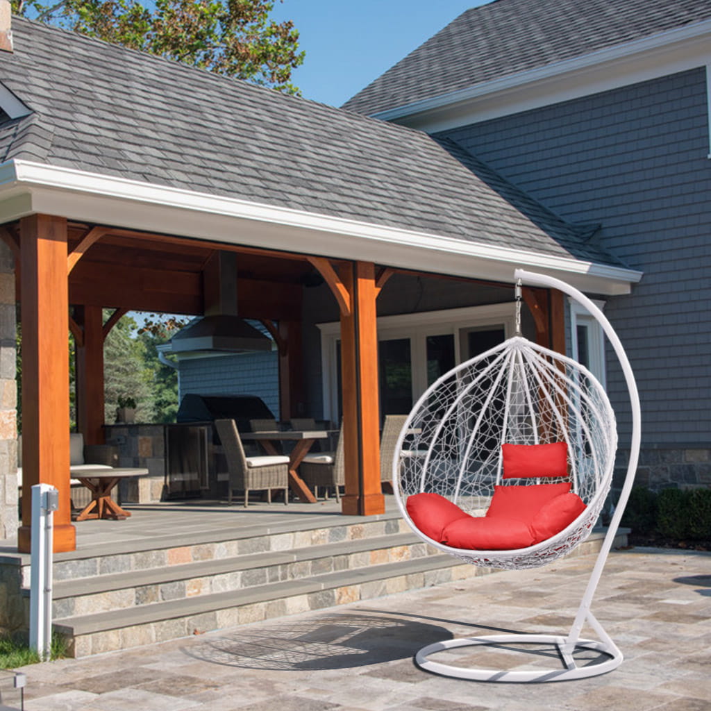 Fotel Wiszący Kokon Bujak Saona - Biały, Poduszka Czerwona