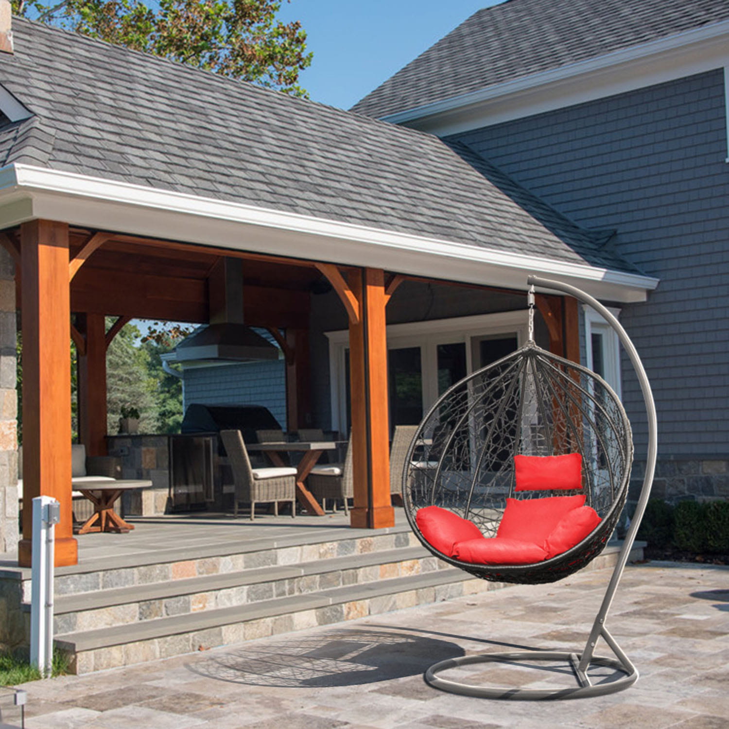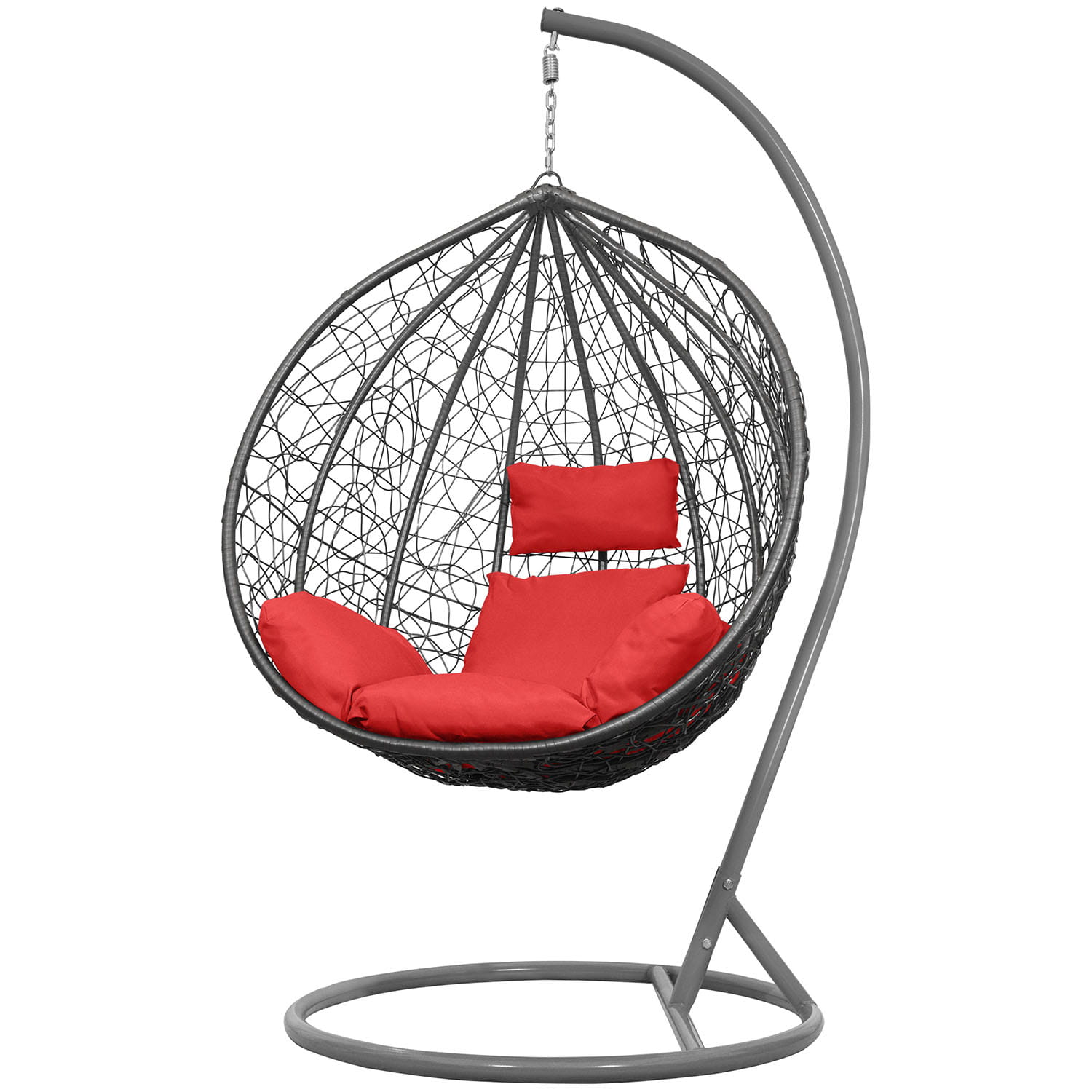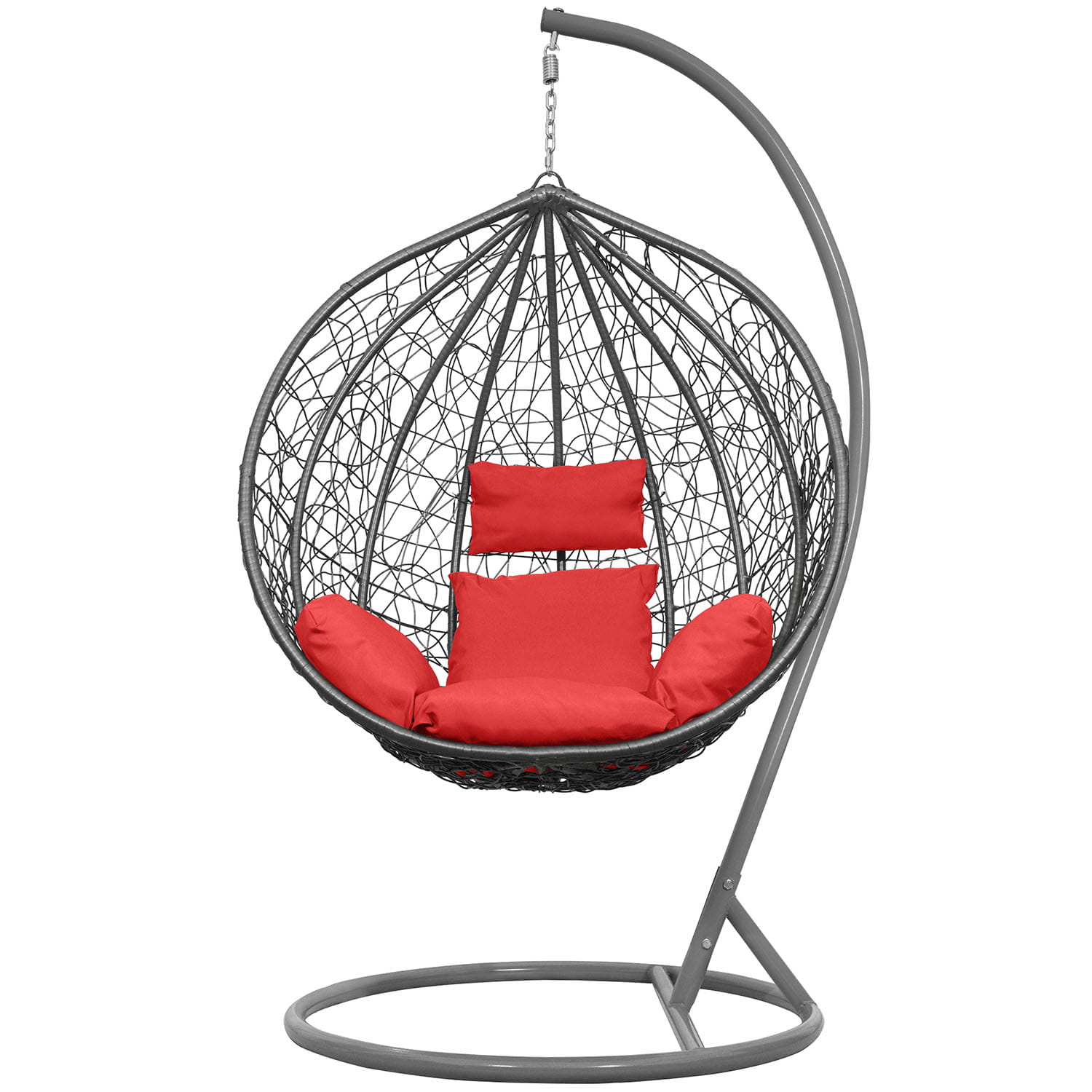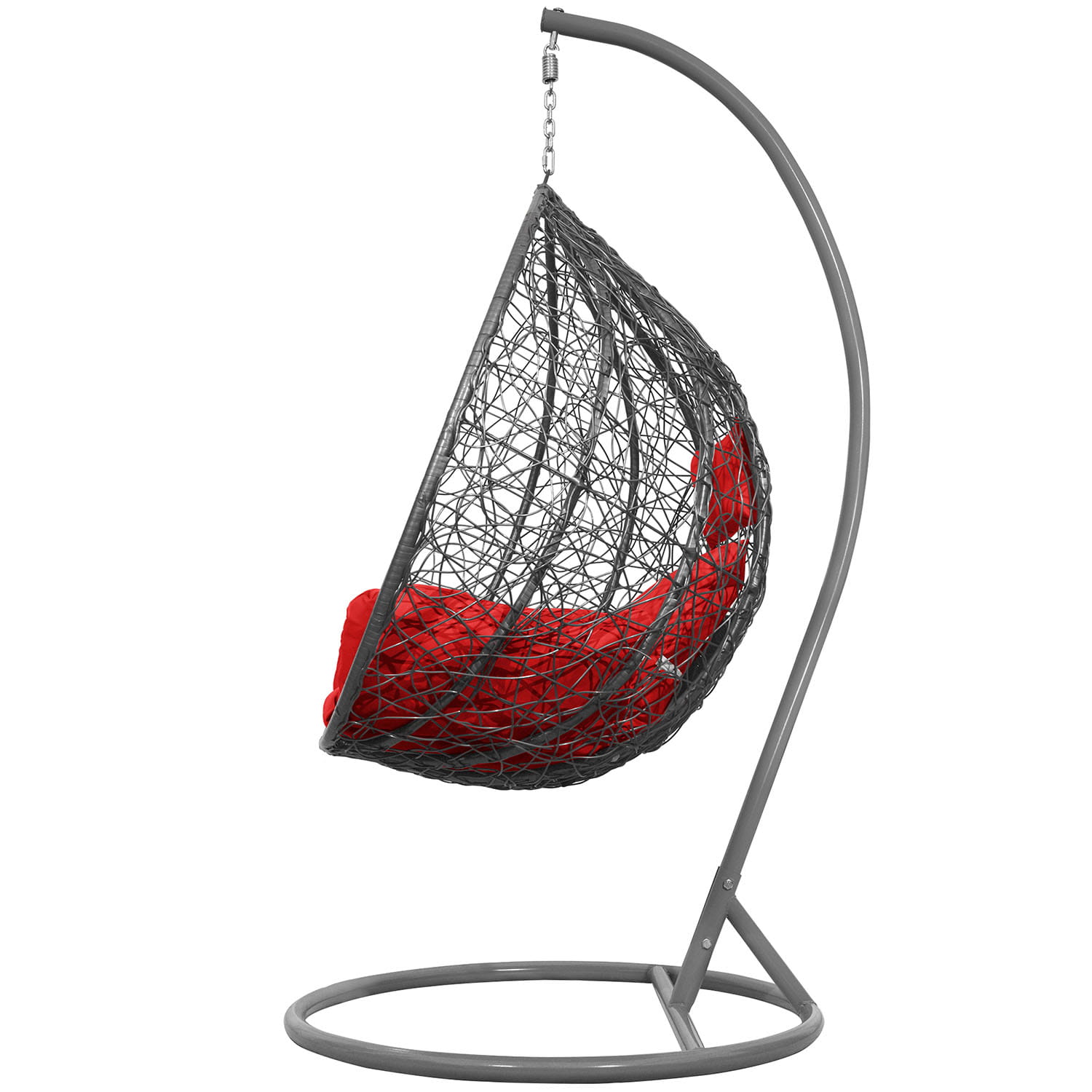 Fotel Wiszący Kokon Bujak Saona - Szary, Poduszka Czerwona